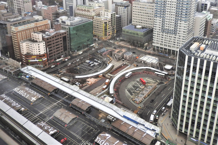 札幌駅北口 バス、タクシ―プール(上空より)