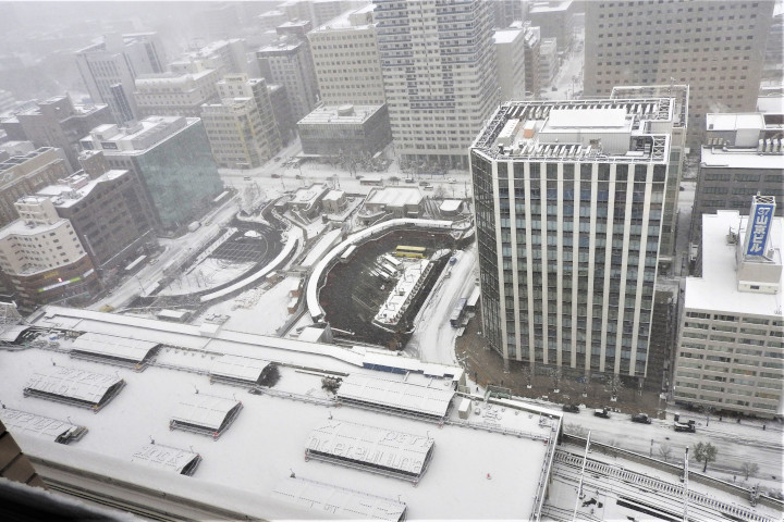 札幌駅北口 バス、タクシ―プール 降雪時(上空より)