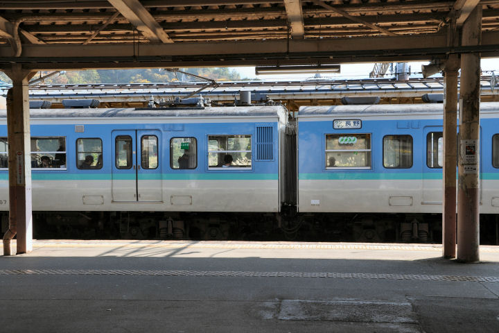 2番線に停車中のしなの鉄道北しなの線の長野行き列車