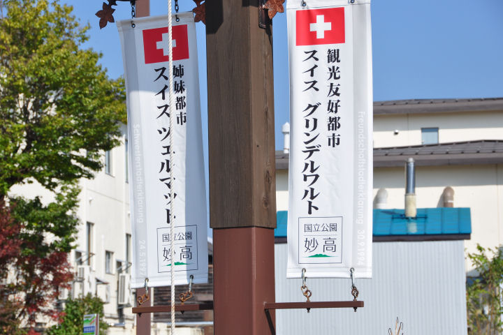 ツェルマット(スイス)との姉妹都市関係を示す旗