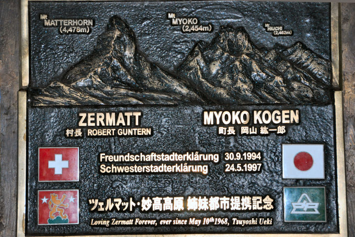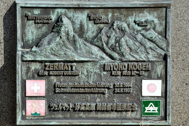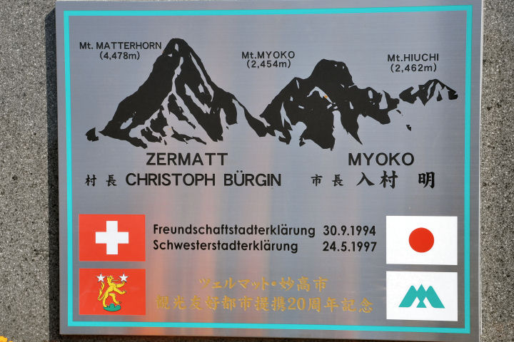 スイス・ツェルマットにある妙高高原との姉妹関係を示すプレート