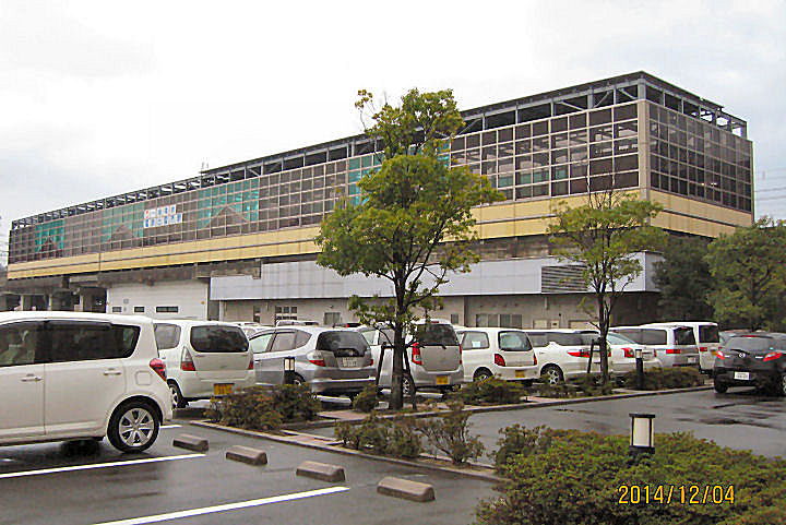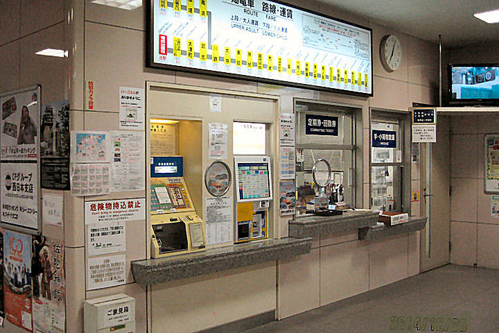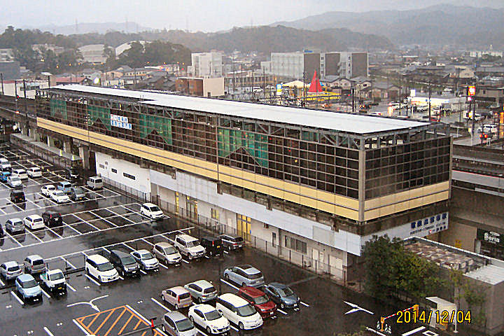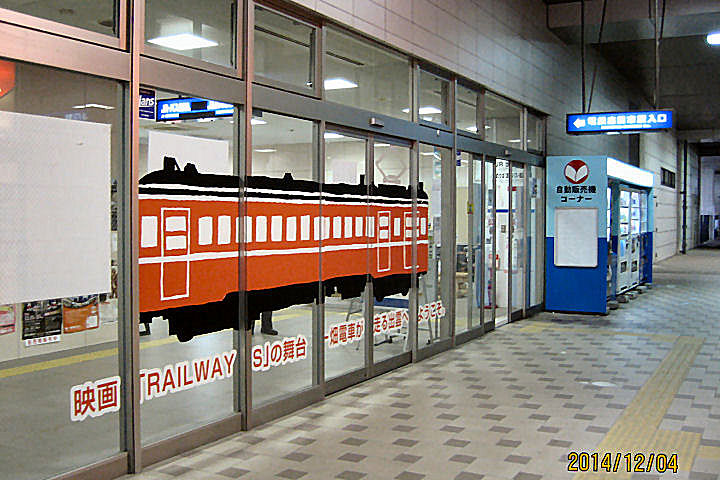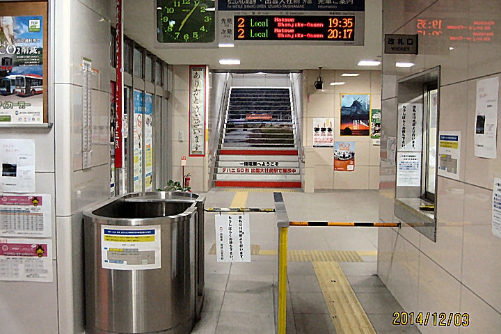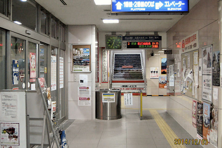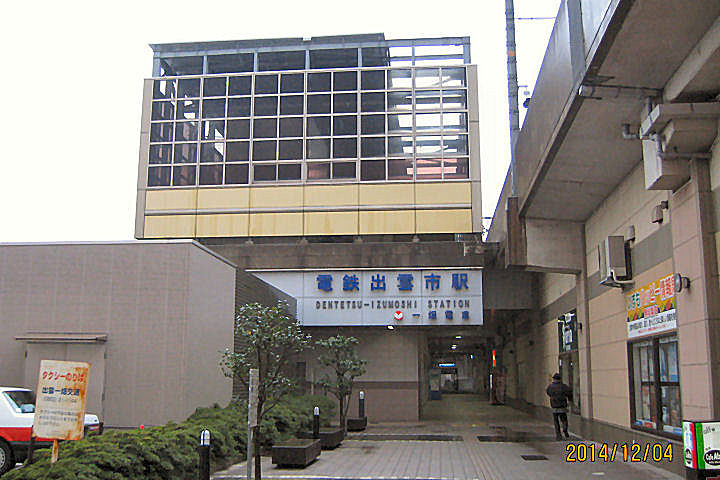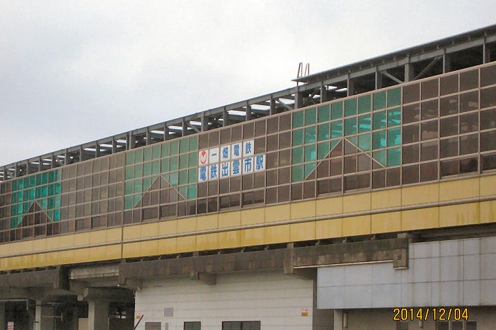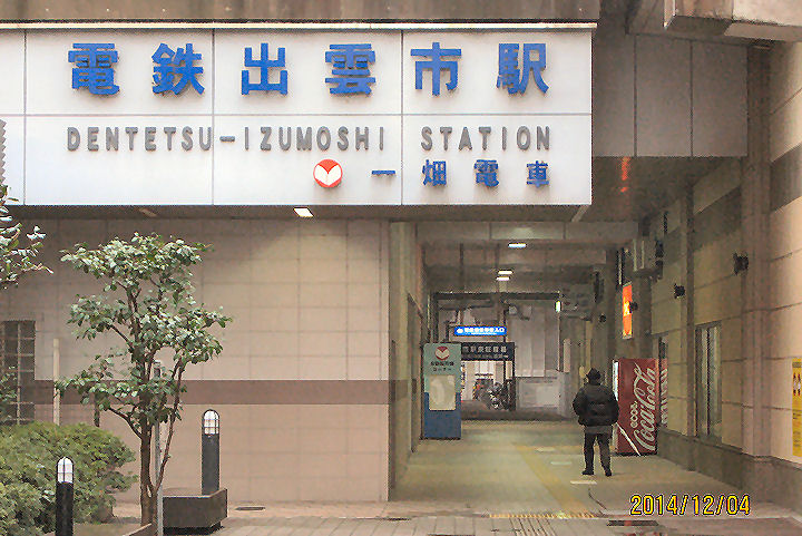 出雲市駅入り口(JR線よりの乗換え口、右側高架はJR線)